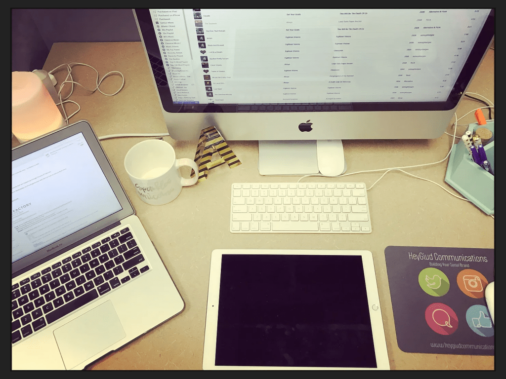My desk is all set! And it’s seen lots of work already. From the FuseDSM transition to proposals for new clients to a month’s worth of content calendars.