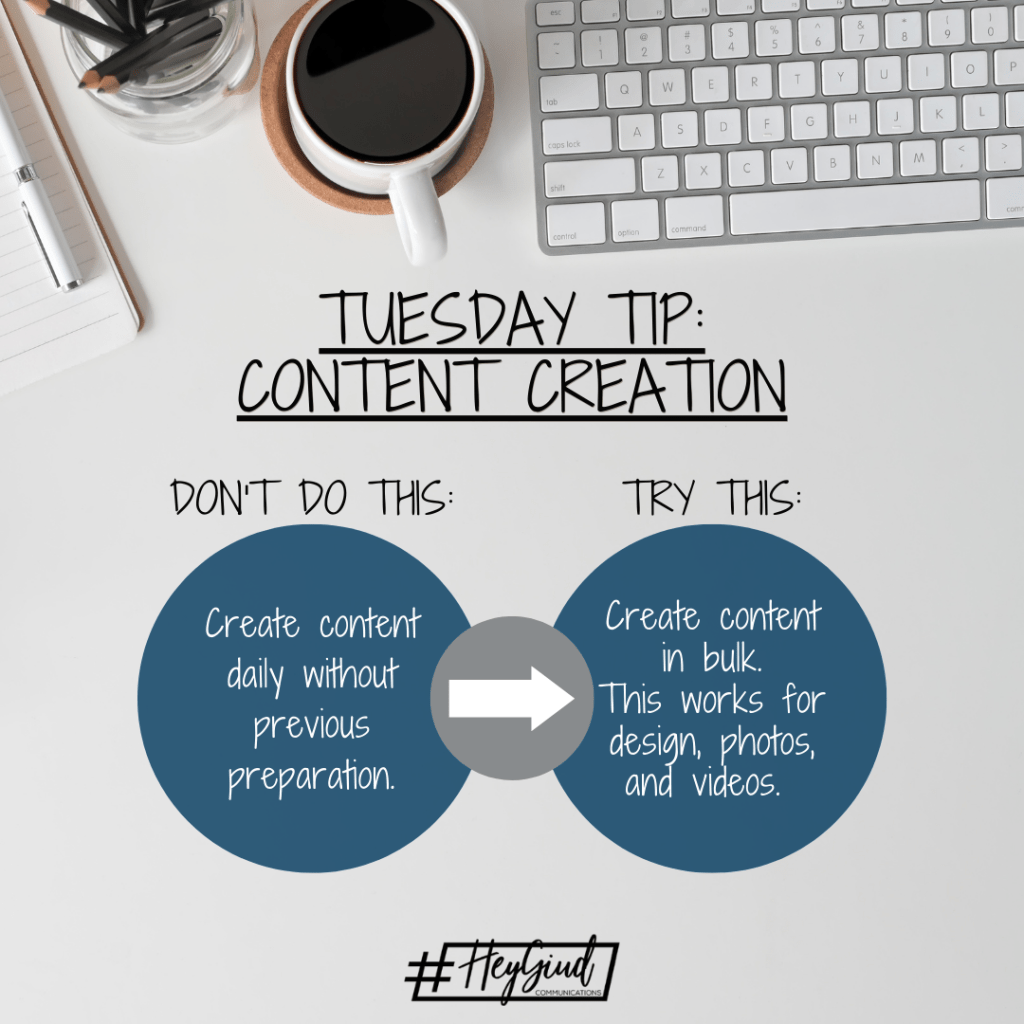 #TuesdayTip is back in full force, and July’s theme is Content Creation. Each week I’ll give you tips on how to make Content Creation easier on you, especially if you’re a small social media team or doing all of your social media yourself.